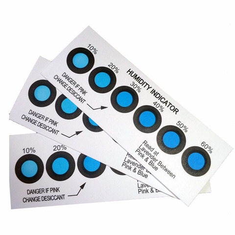 सिलिका जेल आर्द्रता संकेतक कार्ड को शुष्क करता है।